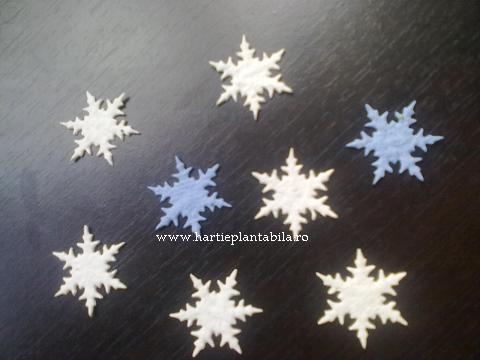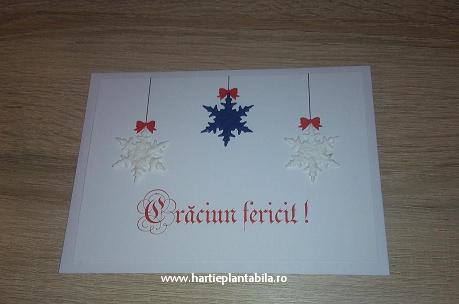 Acest model este realizat in marime A5, avand baza din carton, cu mesaj personalizat, iar cardurile atasate in forma de fulgi de nea fiind din hartie plantabila. Felicitarea are plic asortat si instructiuni de plantare. Fulgii pot avea diferite culori, aranjarea lor depinzand de inspiratia noastra din momentul realizarii fiecarei felicitari.