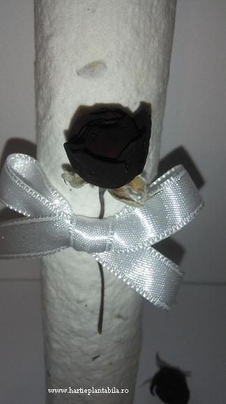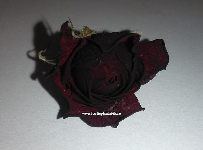 Hartia plantabila de culoare alba contrasteaza puternic cu grena-ul foarte inchis al bobocilor de trandafiri (sunt aproape negri acesti bobocei superbi).