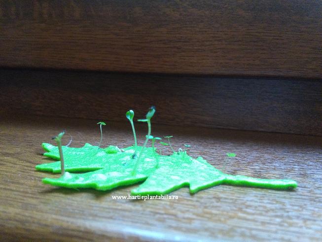 Pentru cei care nu ati vazut cum arata hartia plantabila dupa germinarea semintelor, atasam mai jos cateva imagini: