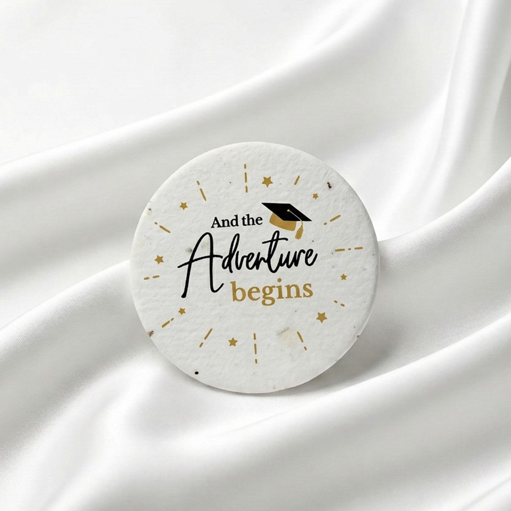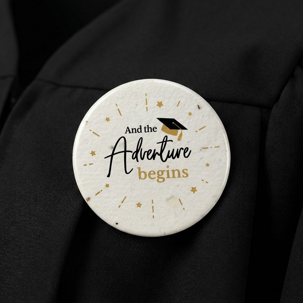 Celebrează momentele de neuitat ale absolvirii cu acest ecuson unic din hârtie plantabilă, realizat manual cu grijă și pasiune.