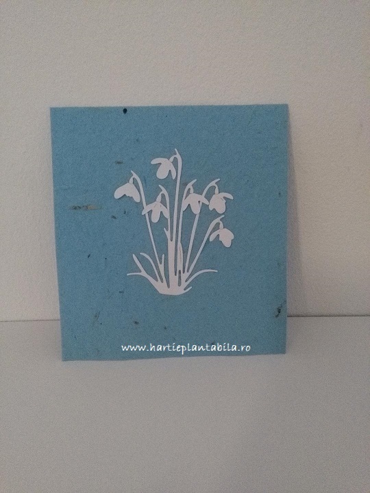Baza felicitarii este din hartie plantabila, de diferite culori: crem, albastru, roz, rosu, mov.