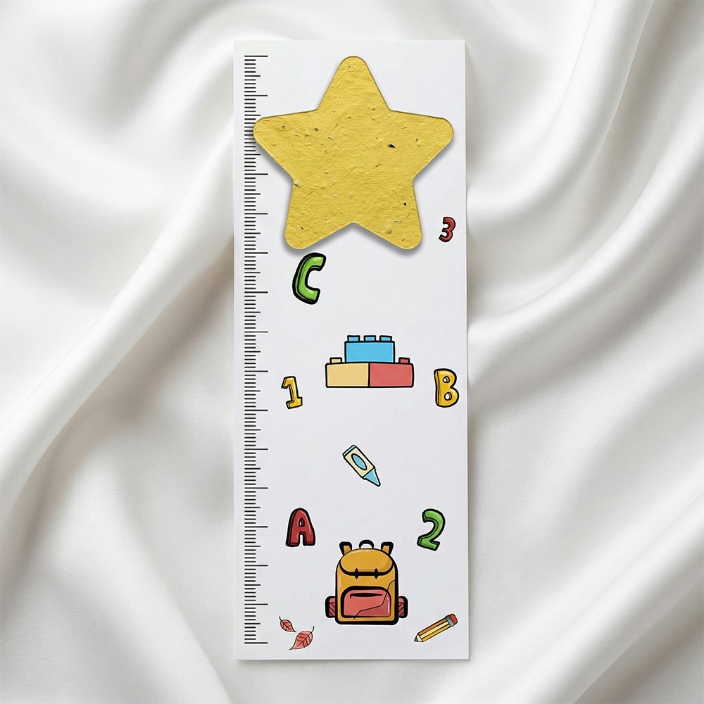 •  Semn de carte cu steluță plantabilă cu mix de semințe de flori de vara..
