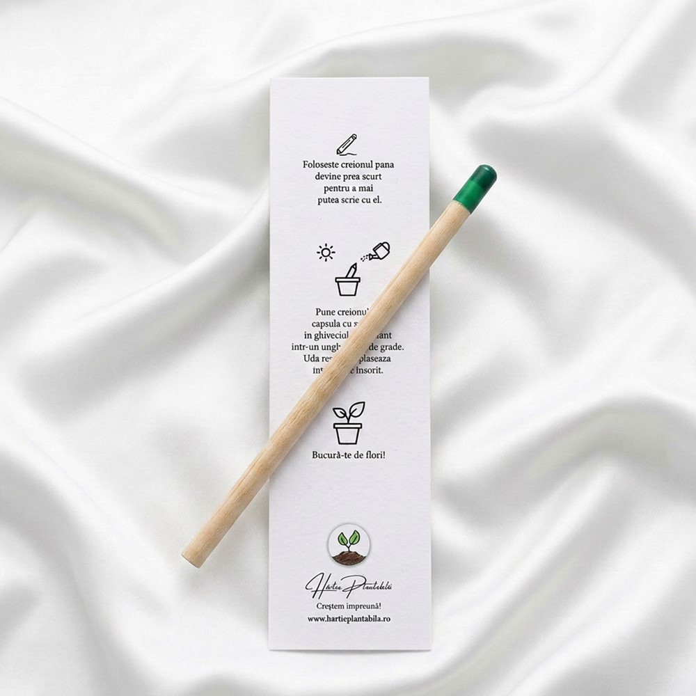 Fiecare set include un creion plantabil marca Hârtie Plantabilă. Acesta funcționează ca un creion obișnuit până când devine prea scurt pentru a mai scrie cu el. În loc să fie aruncat, acesta se plantează. Capsula biodegradabilă de la capătul creionului conține un mix de semințe de flori de vara care vor încolți sub privirile proaspătului absolvent, păstrând vie amintirea anilor de școală.