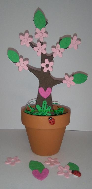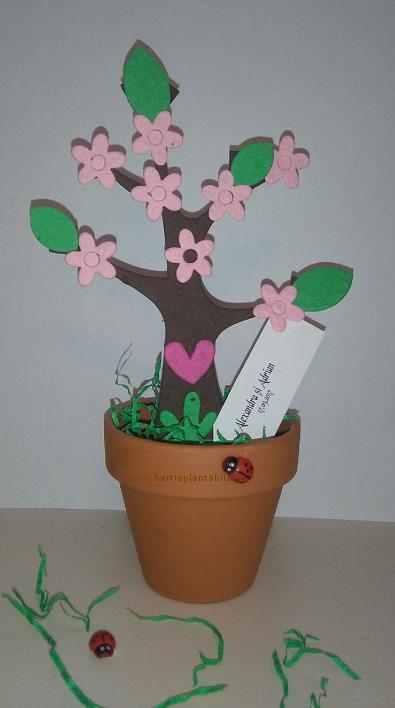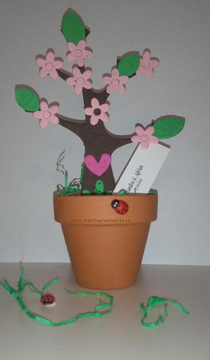 - copacel inflorit din hartie plantabila. Atat trunchiul, cat si florile, frunzele si inimioara sunt decupate manual;